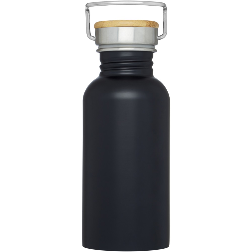 Egyfalú rozsdamentes acél palack csavaros tetővel. A fedélen bambusz rátét, valamint egy fül a könnyű hordozhatóságért. Szivárgásmentes. Szénsavas italokkal nem használható. Mosogatógépben nem mosható és mikrohullámú sütőben történő melegítésre nem alkalmas. Űrtartalom: 550 ml. Csomagolása Avenue díszdoboz. Rozsdamentes acél, bambusz. Emblémázás: Bögredekor, Gravírozás, Körszita, Tamponnyomás