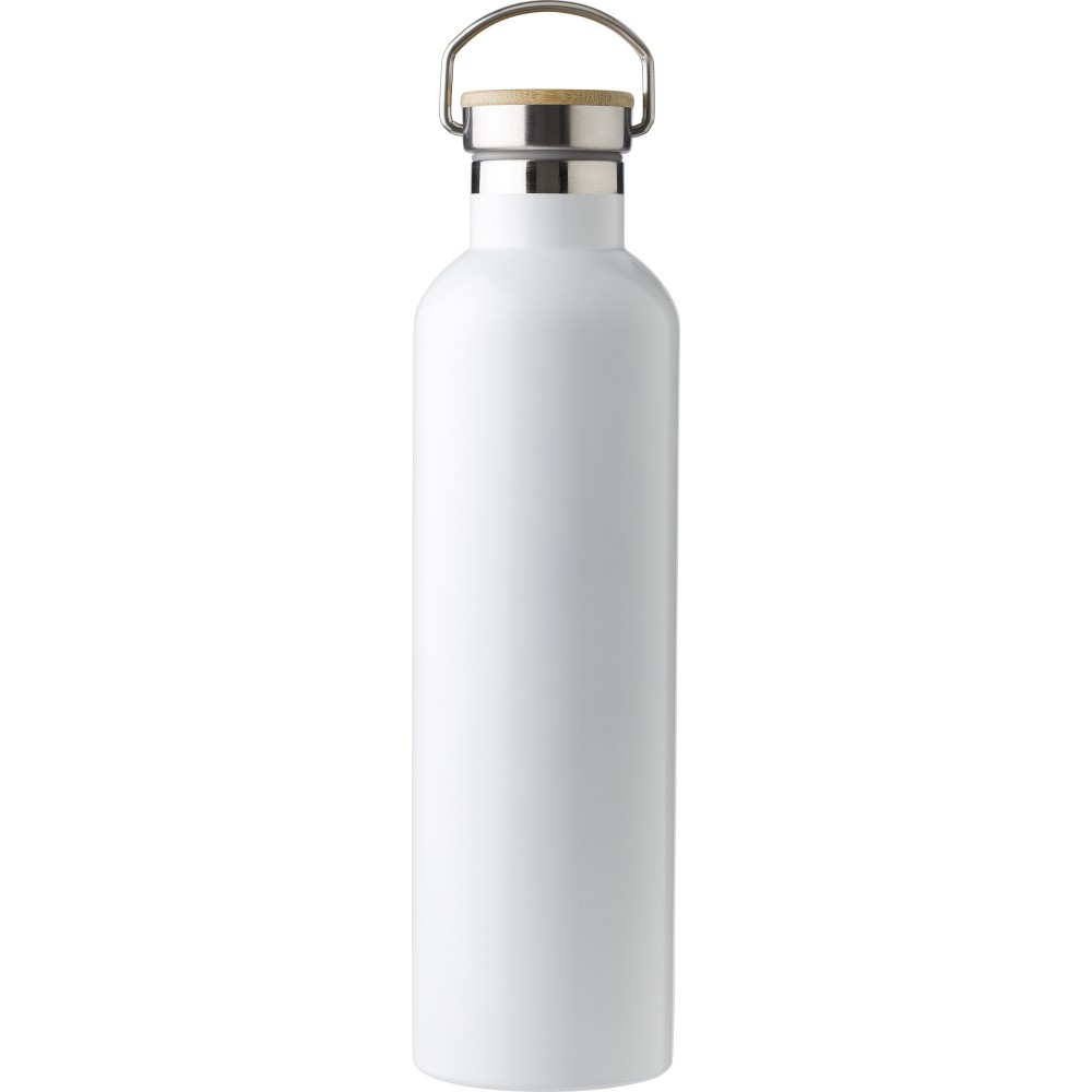 Duplafalú palack bambusz betéttel a kupakon. Rozsdamentes acél. Nagy űrtartalmú palack: 1L. Emblémázás: Gravírozás, Tamponnyomás