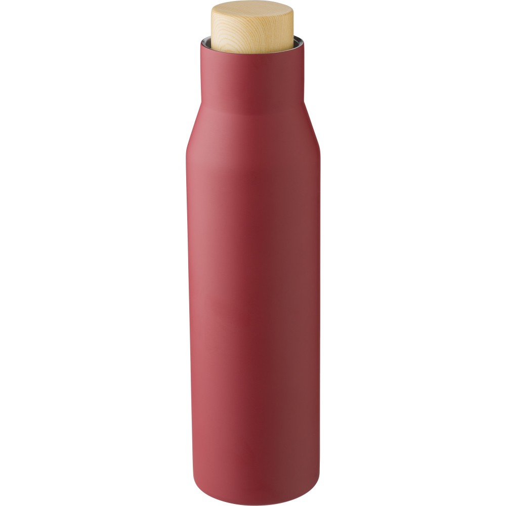 Rozsdamentes acél (s/s304), duplafalú palack fa tetővel. Barna kartondobozba egyedileg csomagolva. Űrtartalom: 500 ml. Emblémázás: Bögredekor, Gravírozás, Körszita