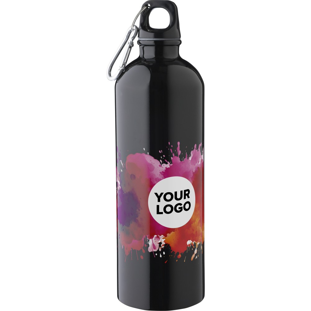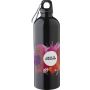 Újrahasznosított rozsdamentes acélból készült 750 ml-es szimplafalú kulacs PP kupakkal és alumínium karabinerrel. Az újrahasznosított anyagra utaló logó a palackra van gravírozva. Mosogatógépben nem tisztítható. Emblémázás: Bögredekor, Gravírozás, Körszita