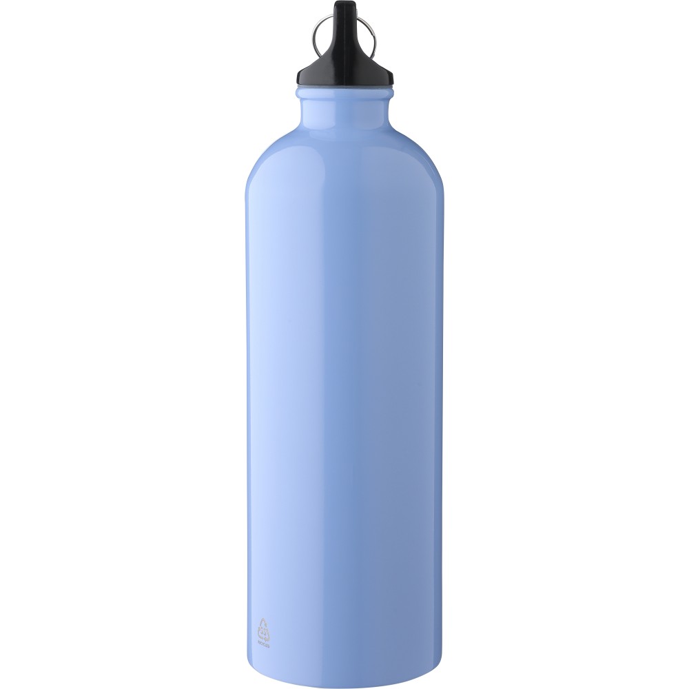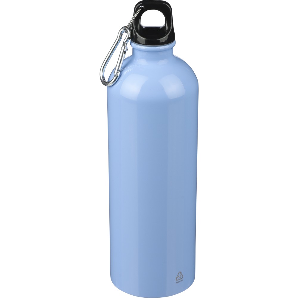 Újrahasznosított rozsdamentes acélból készült 750 ml-es szimplafalú kulacs PP kupakkal és alumínium karabinerrel. Az újrahasznosított anyagra utaló logó a palackra van gravírozva. Mosogatógépben nem tisztítható. Emblémázás: Bögredekor, Gravírozás, Körszita