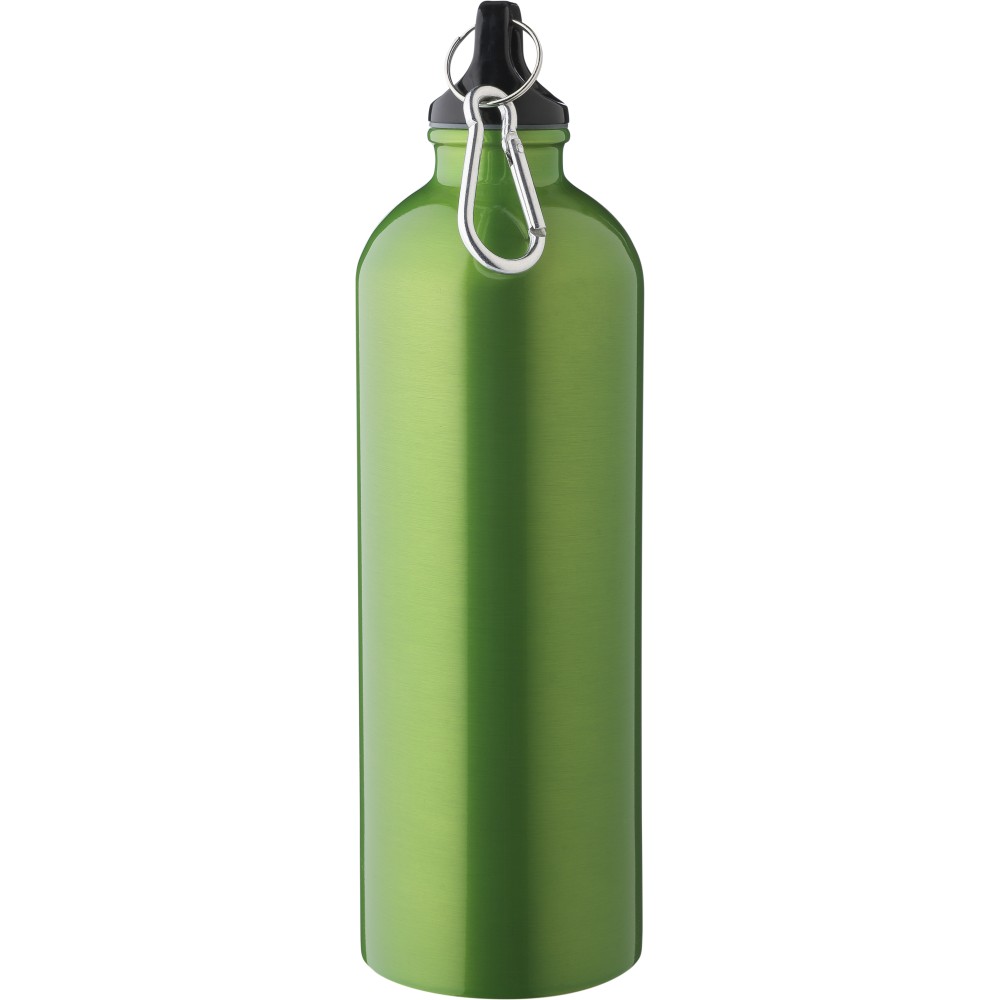 Újrahasznosított rozsdamentes acélból készült 750 ml-es szimplafalú kulacs PP kupakkal és alumínium karabinerrel. Az újrahasznosított anyagra utaló logó a palackra van gravírozva. Mosogatógépben nem tisztítható. Emblémázás: Bögredekor, Gravírozás, Körszita