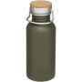 Egyfalú rozsdamentes acél palack csavaros tetővel. A fedélen bambusz rátét, valamint egy fül a könnyű hordozhatóságért. Szivárgásmentes. Szénsavas italokkal nem használható. Mosogatógépben nem mosható és mikrohullámú sütőben történő melegítésre nem alkalmas. Űrtartalom: 550 ml. Csomagolása Avenue díszdoboz. Rozsdamentes acél, bambusz. Emblémázás: Bögredekor, Gravírozás, Körszita, Tamponnyomás