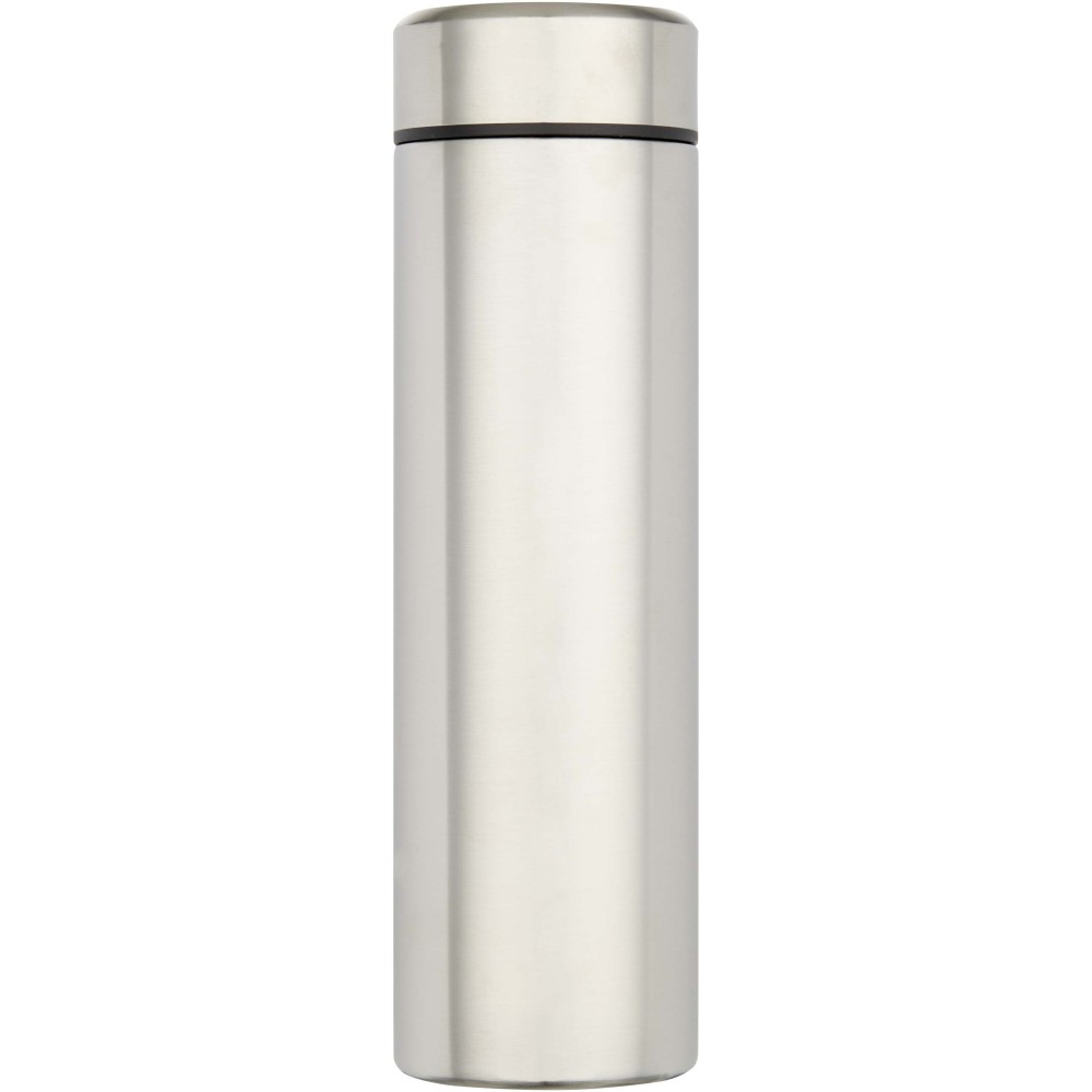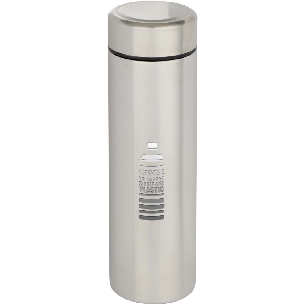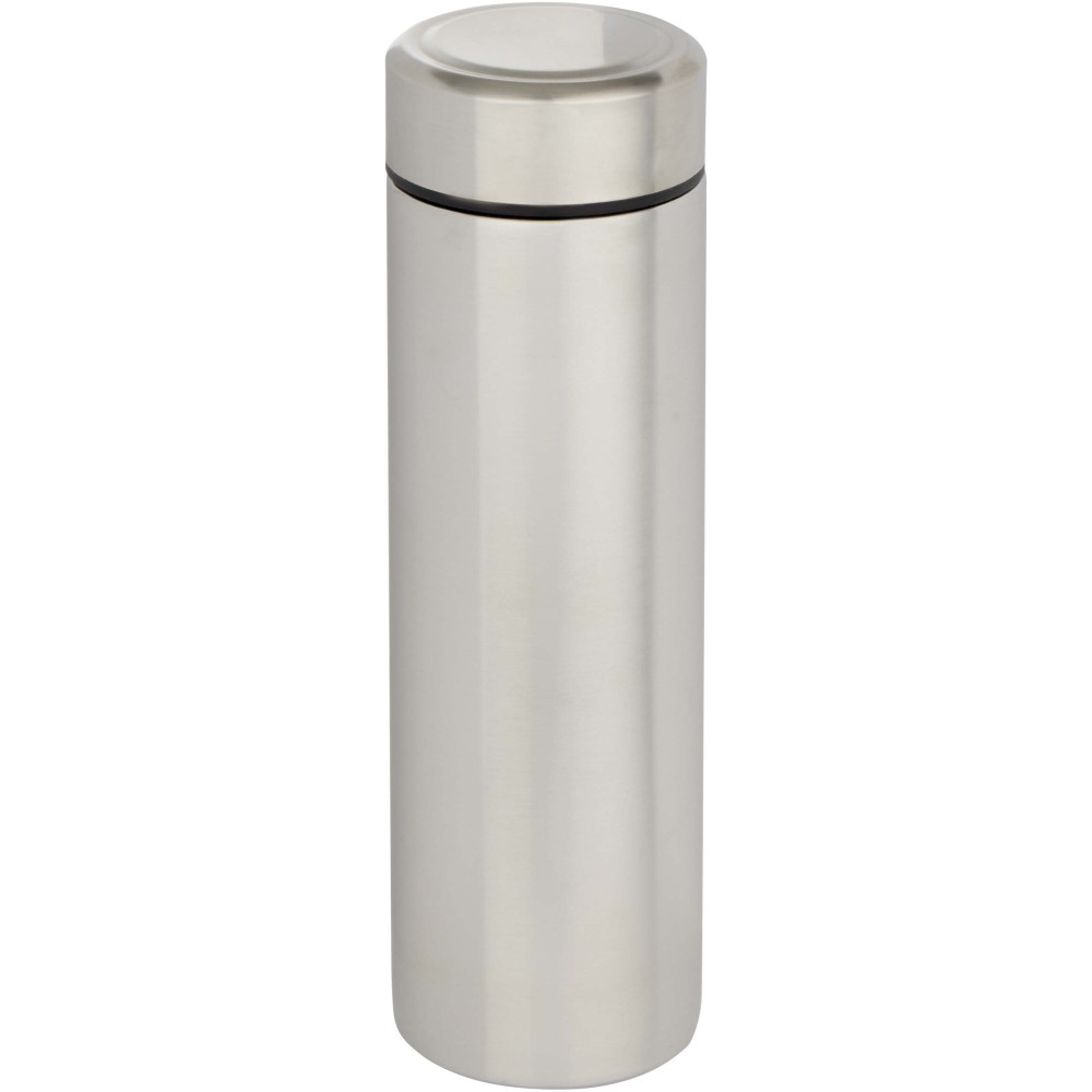 Duplafalú, vákuumszigetelt rozsdamentes acélból készült termosz, amely hosszú ideig tartja az italokat a kívánt hőmérsékleten. A kényelmesebb használat érdekében egy kivehető teaszűrőt tartalmaz. A 450 ml-es űrtartalom és a szivárgásmentes kialakítás révén ideális választás a mindennapi használatra vagy utazásokhoz. Emblémázás: Bögredekor