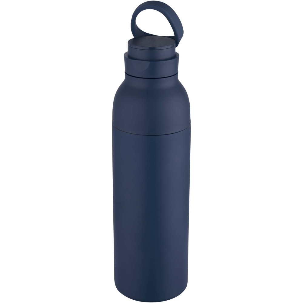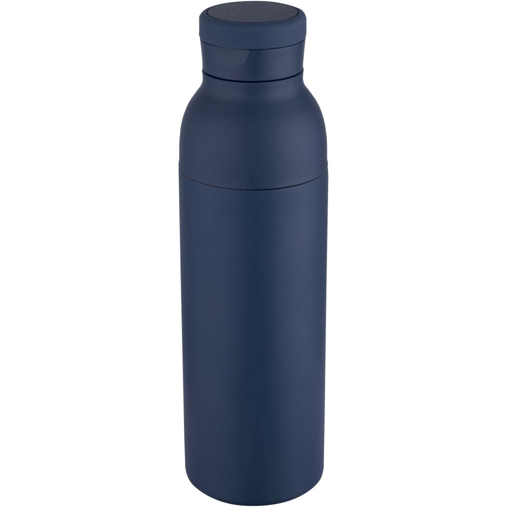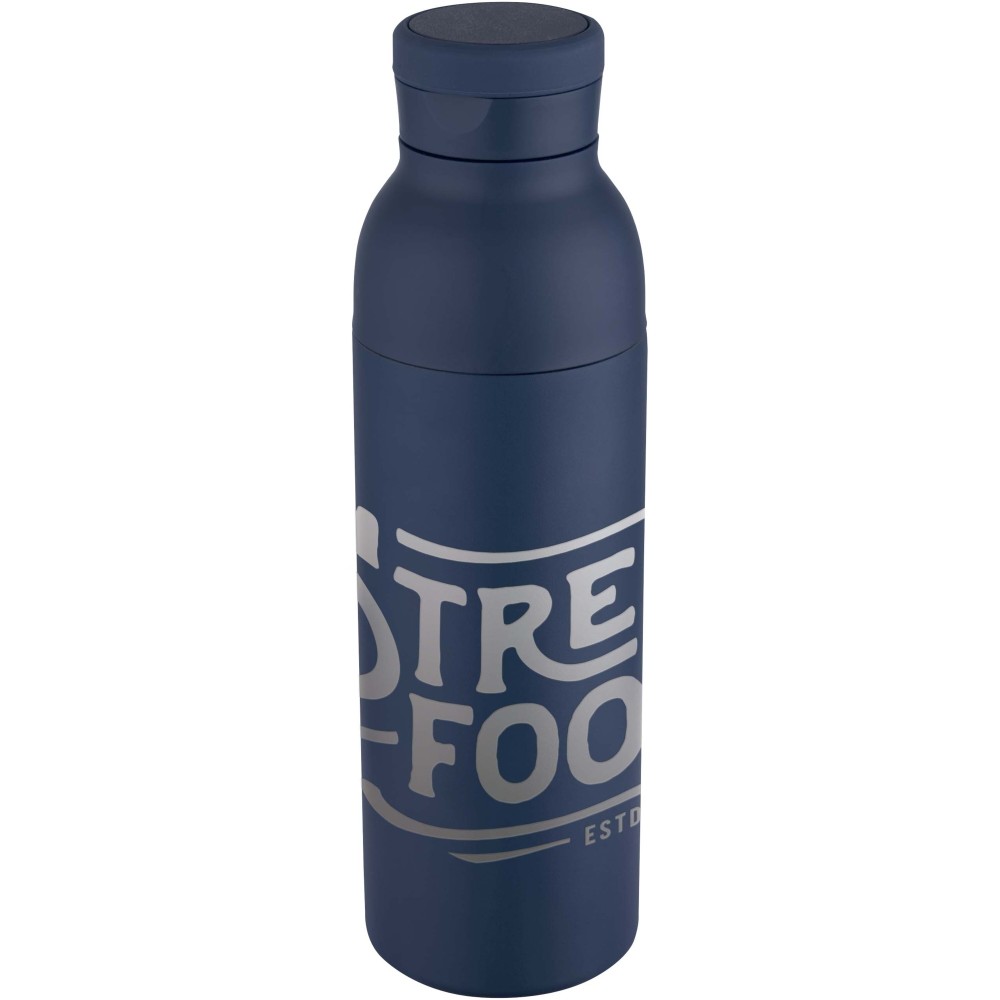 RCS tanúsítvánnyal rendelkező rozsdamentes acélból készült, duplafalú, vákuumszigetelt palack, amelynek fedelén egy diszkrét, beépített szilikon fogantyú található. Az italokat 48 órán át hidegen, vagy akár 12 órán keresztül melegen tartja. A két részből álló konstrukció megkönnyíti a tisztítást, míg a tartós porszórt bevonat és a belső rézszigetelés hosszú élettartamot és kiváló hőtartást biztosít. A terméket újrahasznosított kartonból készült ajándékdobozban szállítjuk. Űrtartalma: 650 ml. Emblémázás: Bögredekor
