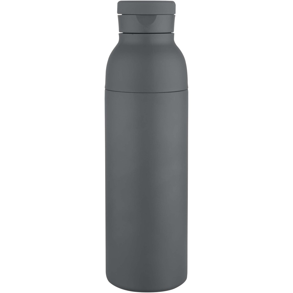 RCS tanúsítvánnyal rendelkező rozsdamentes acélból készült, duplafalú, vákuumszigetelt palack, amelynek fedelén egy diszkrét, beépített szilikon fogantyú található. Az italokat 48 órán át hidegen, vagy akár 12 órán keresztül melegen tartja. A két részből álló konstrukció megkönnyíti a tisztítást, míg a tartós porszórt bevonat és a belső rézszigetelés hosszú élettartamot és kiváló hőtartást biztosít. A terméket újrahasznosított kartonból készült ajándékdobozban szállítjuk. Űrtartalma: 650 ml. Emblémázás: Bögredekor